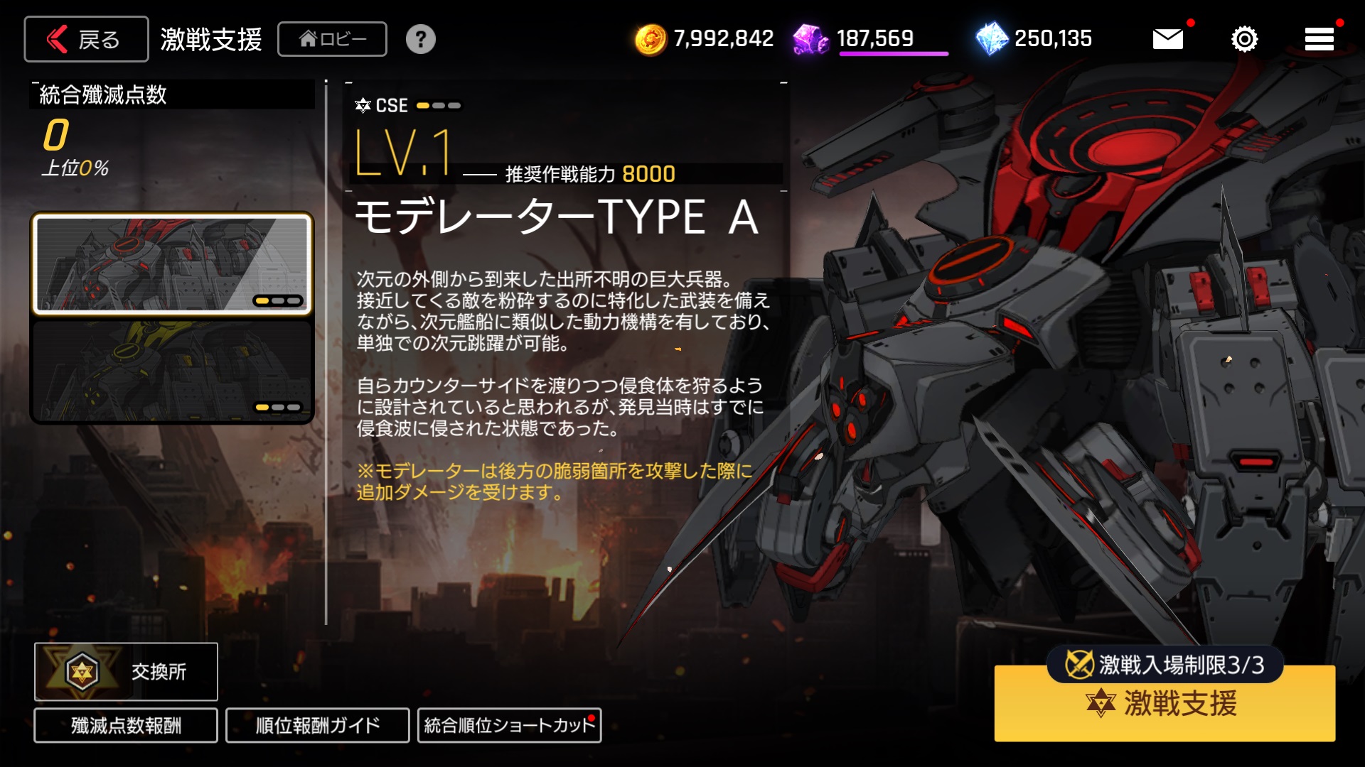 高難易度のPvEコンテンツ「激戦支援」では、ボスを倒した際の最大与ダメージ量や制限時間の残量に応じて「激戦支援実績ポイント」を獲得できます。
