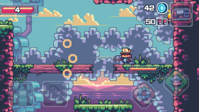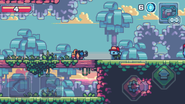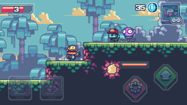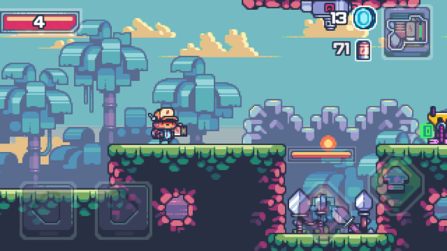 レトロ調で表現された2Dドット絵のクオリティが高いほか、スマホ向けアプリのアクションゲームとしては操作性が高く、プレイしやすいところもポイントです。