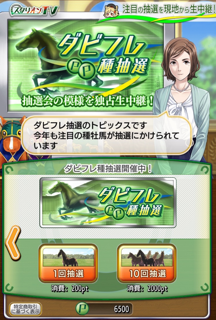 「ダビフレ種抽選」の2種類あります。そして今回は、より質のいい種牡馬を獲得できる