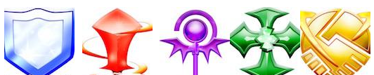 ▲画像左から「タンク」「物理アタッカー」「魔法アタッカー」「ヒーラー」「アシスト」のアイコン。キャラクターアイコンの左上にそれぞれのロールアイコンが表示されているので、パーティーを組むときに確認しましょう。