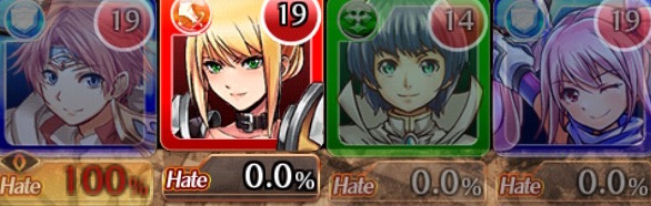 ▲ヘイトの割合は各キャラクターアイコンの下に表示されます。敵に攻撃したことで、1番左の「タンク」キャラクターにヘイトが集中!