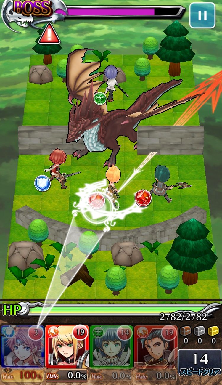 ひっぱって弾くといった簡単操作でありながら、“ロール”や“ヘイト”などのシステム、壁や岩などの障害物を利用した戦い方など、戦略的なバトルを楽しめます。他にも、強化合成によるキャラクターの強化や、他プレイヤーとのマルチプレイなど、育成要素やゲームシステムも充実!