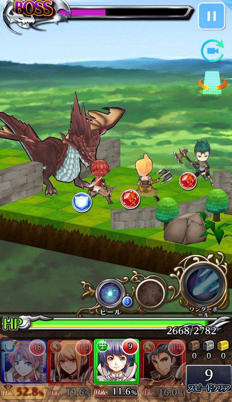 ▲3Dマップで表現されたステージは、様々な角度から見ることができます。ゲーム画面右上にあるカメラアイコンをタップして、好きな視点でバトルに挑みましょう!