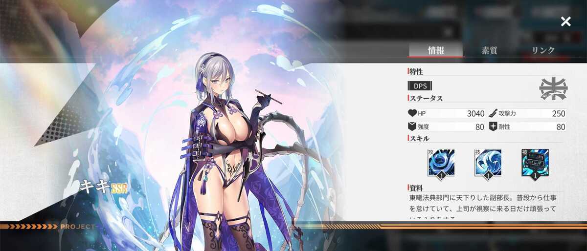 強力なアタッカー性能持ちのSSRキャラをリセマラで入手する場合は、特性:DPS持ちのSSR「キキ」の名前が挙がるでしょう。