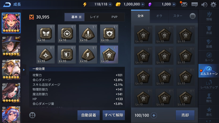 「オラエルストーン」は、英雄の能力値をアップさせ、合計7つの装着スロットを持っています。「スターエルストーン」は、装着すると「オラエルストーン」の追加オプションを解禁できます。特定の英雄のみ装着でき、1つの装着スロットを持っています。