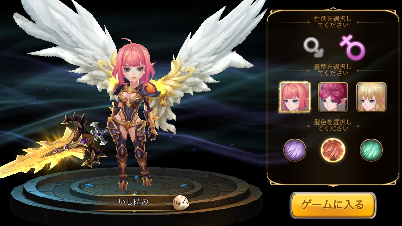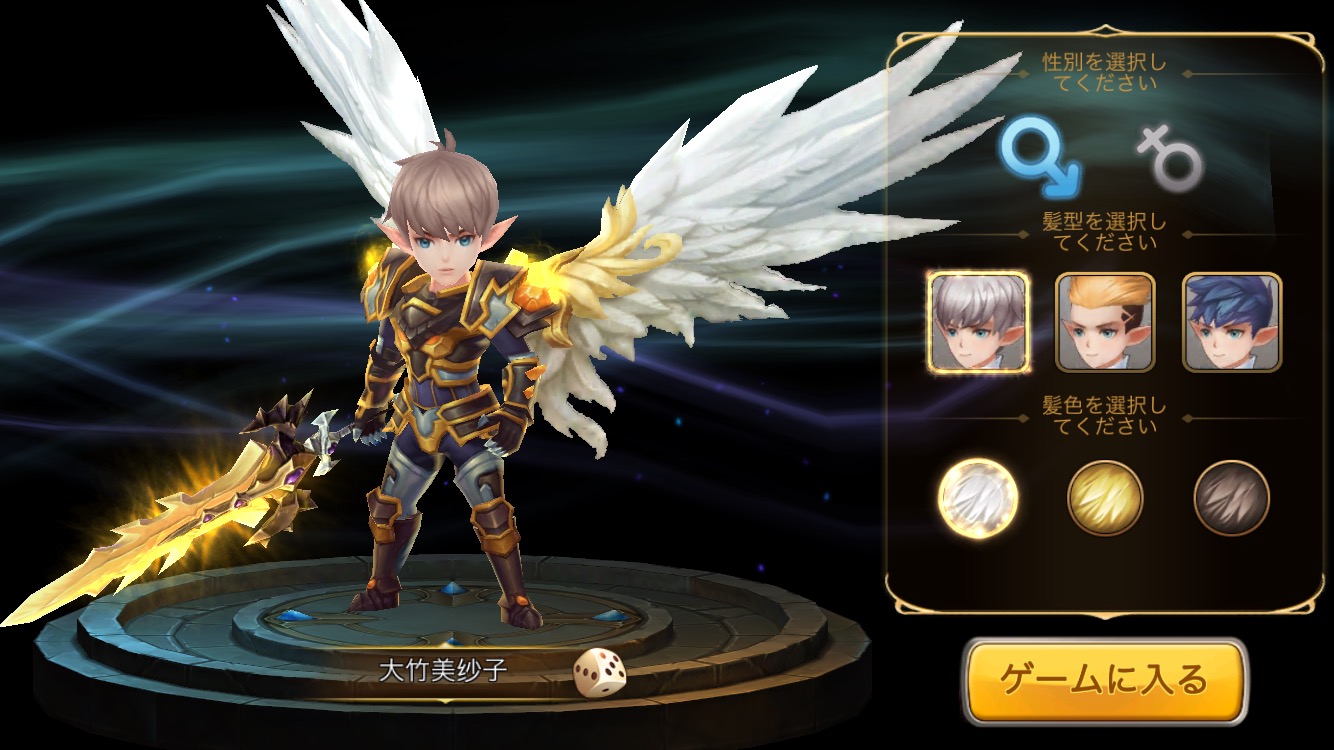 本作はゲーム開始時に、主人公の性別と見た目を設定します。金髪ロングや短髪黒髪など、ある程度組み合わせのパターンが決められており、そこから選択していくという形式。