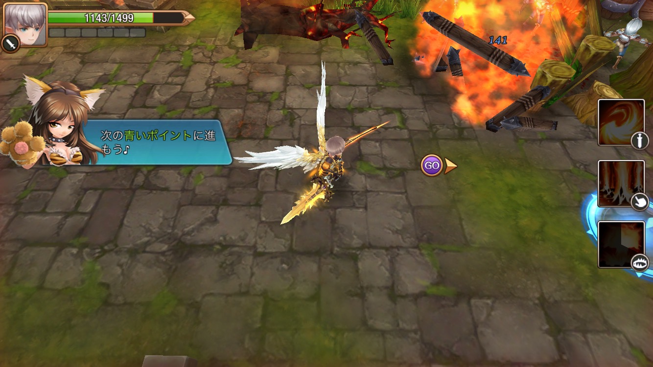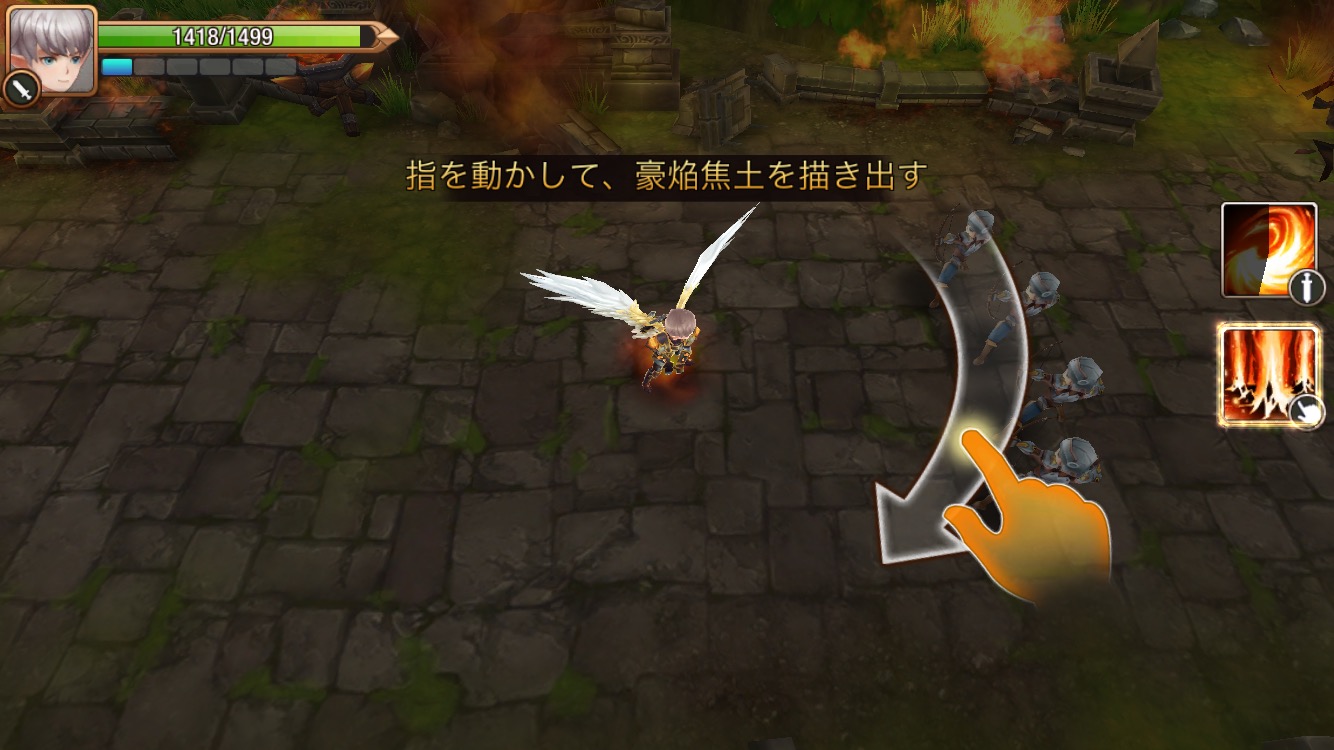 ▲最初に新井里美さんのボイスつきでスキルの解説をしてくれます。画像のように指でなぞった場所に攻撃するスキルもあり、簡単操作で戦略的なバトルが楽しめますよ。