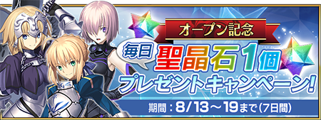 2015年8月13日(木)~8月19日(水)23:59までにiOS版『Fate/Grand Order』を初めて開始し、毎日ログインした方。