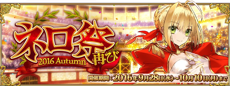 「ネロ祭再び ~2016 Autumn~ピックアップ召喚」も開催されます。