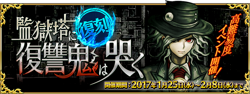 「復刻:監獄塔に復讐鬼は哭く」は2016年に開催された「監獄塔に復讐鬼は哭く」の復刻イベントです。下記記事にて2016年度開催時のクエスト情報や、初心者におすすめの低レアサーヴァントを紹介しているので、開催前にチェックしてみてください。