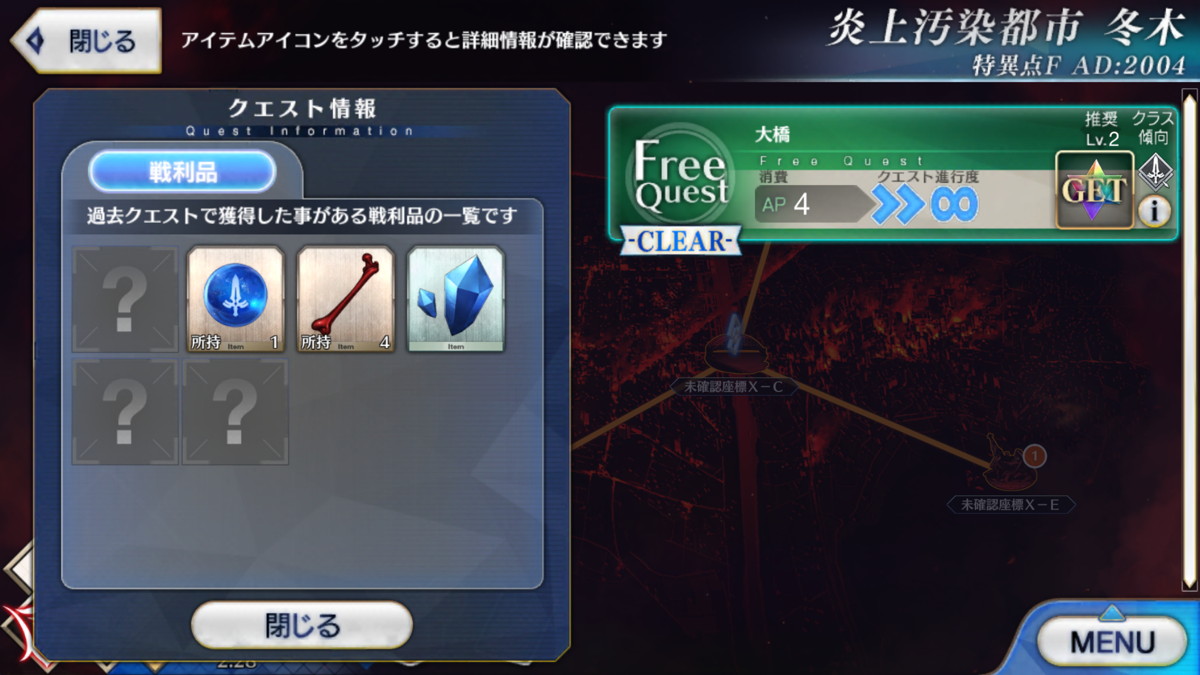 ・フリークエストにて、過去に獲得した戦利品を、一覧で確認できる機能を追加します。