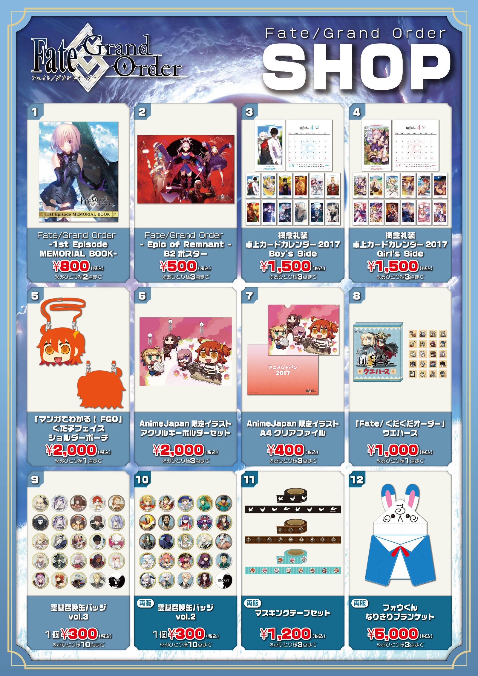 また、「1st Episode MEMORIAL BOOK」以外にも、『Fate/Grand Order(FGO)』グッズの販売も予定されています!