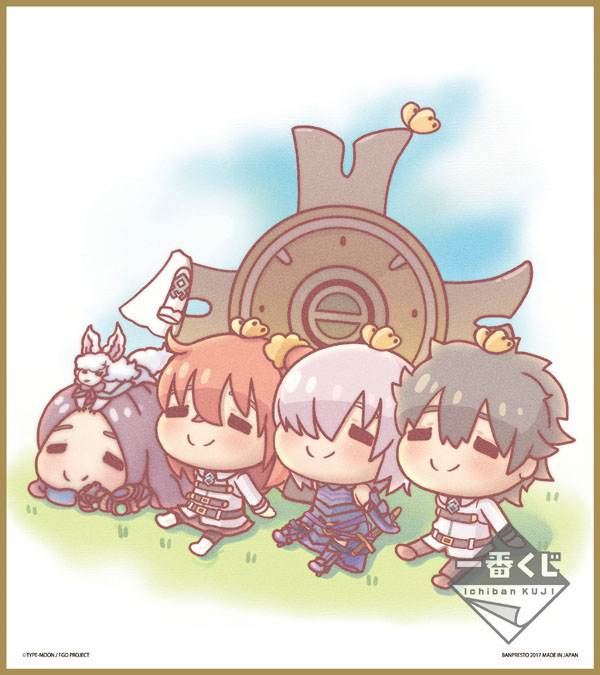 カルデアメンバーを、バンプレストオリジナルのデフォルメブランド「にもじしりーず ぽや」で描きおろした色紙です。最後のくじを引くとその場でもらえます。