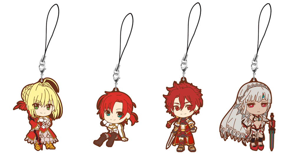 「セイバー/ネロ・クラウディウス」、「ライダー/ブーディカ」、「ライダー/アレキサンダー」、「セイバー/アルテラ」をデザインしたラバーストラップです。