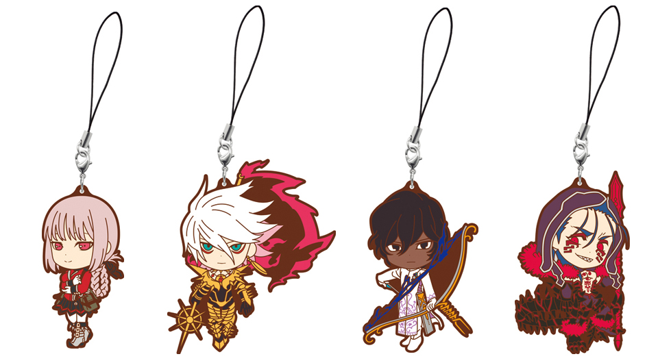 「セイバー/モードレッド」、「アサシン/ジャック・ザ・リッパー」、「アーチャー/ニコラ・テスラ」、「ランサー/アルトリア・ペンドラゴン[オルタ]」をデザインしたラバーストラップです。