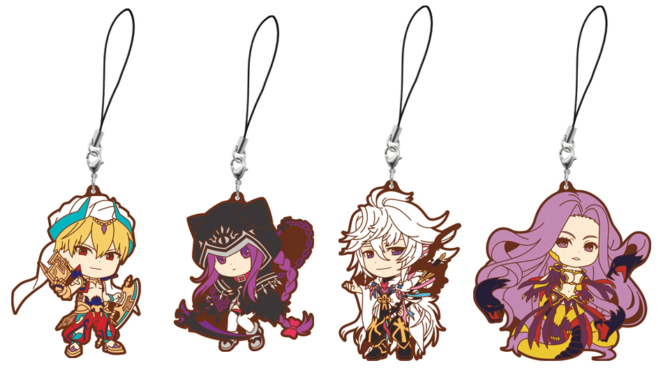 「キャスター/ギルガメッシュ」、「ランサー/メドゥーサ」、「キャスター/マーリン」、「アヴェンジャー/ゴルゴーン」をデザインしたラバーストラップです。