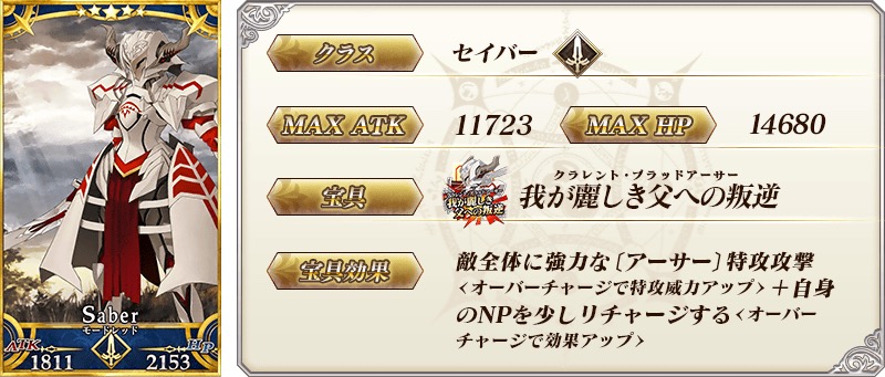 | 2月28日(水)0:00~3月1日(木)23:59 | モードレッド(セイバー) アルトリア・ペンドラゴン(ランサー) ガウェイン ランスロット(セイバー) トリスタン |