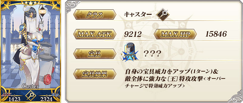 レオナルド・ダ・ヴィンチ」しか所有していなかった全体宝具。宝具威力アップと〔王〕特攻が付与されているところから、