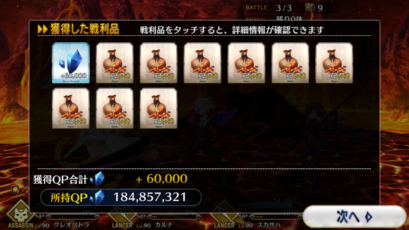 | 1/1 | 源頼光(狂) HP66,124 | 清姫(狂) HP53,777 | 静謐のハサン(殺) HP45,519 |