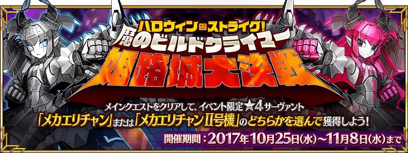 『Fate/Grand Order(FGO)』にて、10月25日(水)よりハロウィンイベント3部作の完結編にあたる、「ハロウィン・ストライク! 魔のビルドクライマー/姫路城大決戦」が開催!
