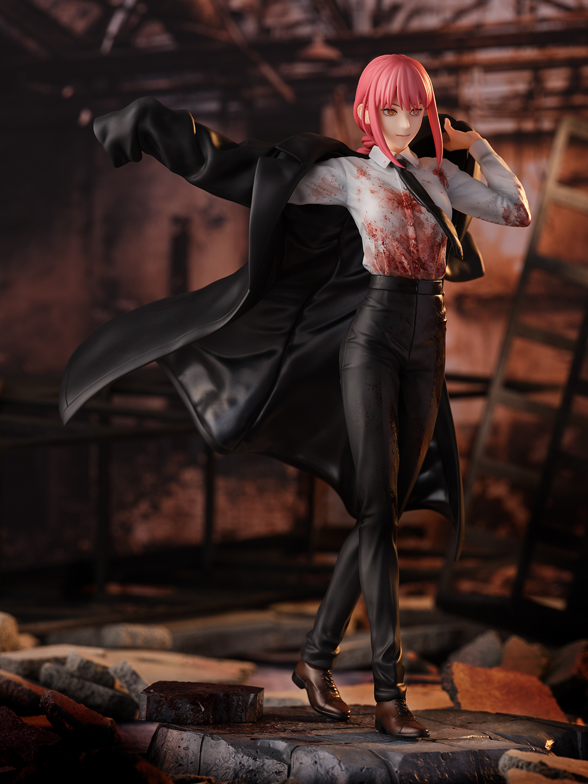 MAPPAと渋谷スクランブルフィギュアの共同製作で公安のコートをひるがえして静かに歩き始める姿を立体化。制服に飛び散った血のリアルな質感や、ミステリアスな佇まいが表現されています。