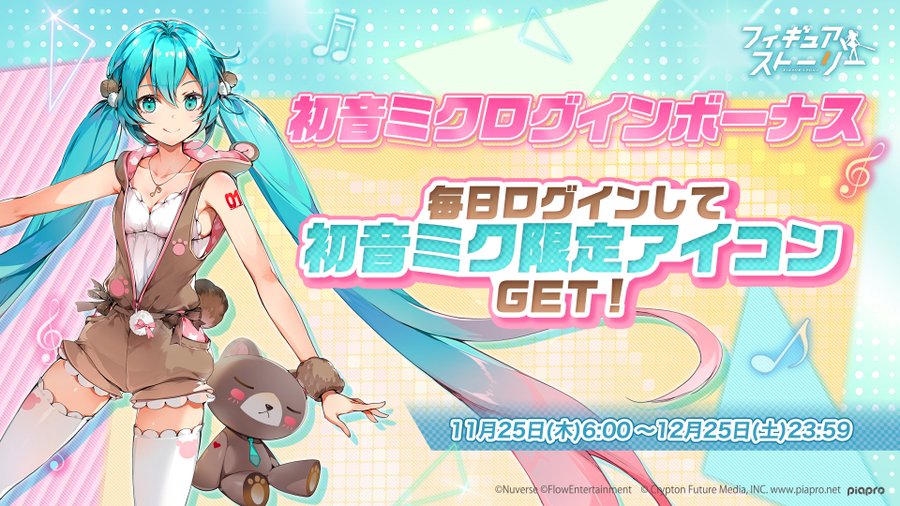 『フィギュアストーリー(ギアスト)』にて、2021年11月28日(日)6:00より、バーチャル・シンガー「初音ミク」とのコラボが開催中です。