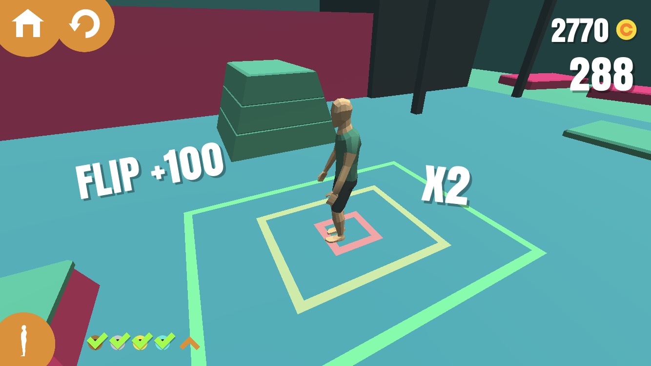 慣れたら各ステージごとに設定されている特別なミッションにも挑戦してみるのがおすすめです。例えば上記の「Do one flip only」は“1回転だけして着地しろ”という意味になります。