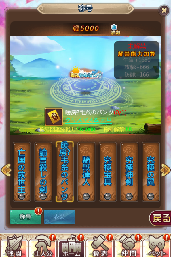イベント限定称号「暖房、毛糸のパンツ」
