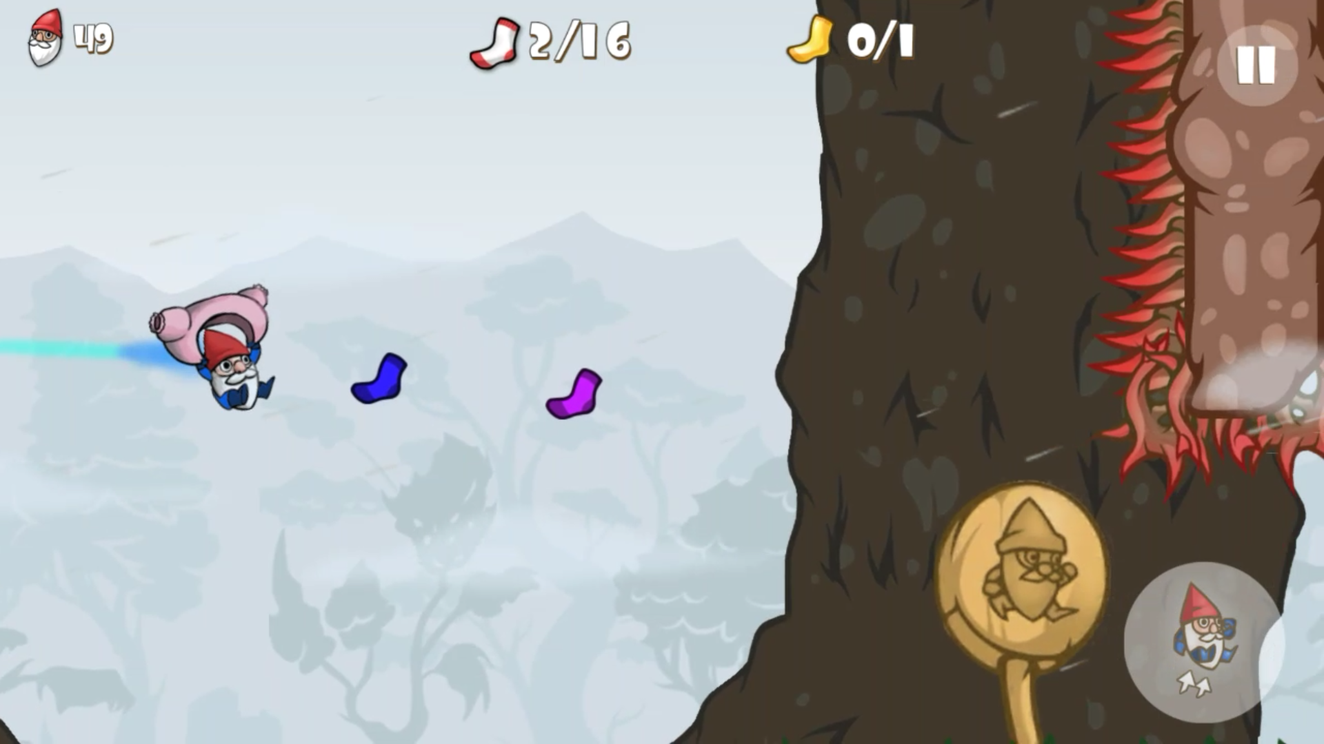 コース上には色とりどりの靴下が配置されているので、ジャンプと滑空を駆使して回収していきましょう。また、各ステージには靴下の獲得数にノルマがあり、その数以上の靴下を回収しないとクリアはできないので注意。