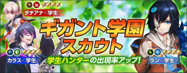 人気のハンター「タチアナ」「ラン」「カラス」が学生服姿になって登場する「ギガント学園スカウト」が開催されました。