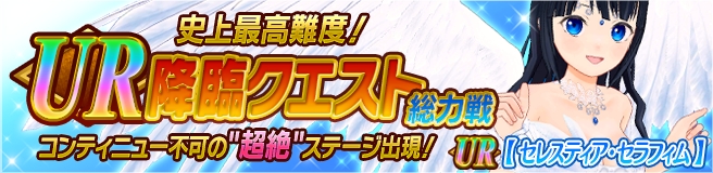 特に過去最高難度を誇る“UR降臨クエスト”は、新UR天衣“セレスティア・セラフィム”が獲得可能な、時間限定開催の特別仕様!