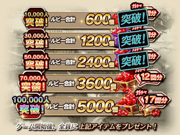 2018年夏にリリース予定の『グレントリア ~眠レル竜ト暁ノ戦士ノ物語~』の事前登録者数が5万人を突破しました。それに伴い、事前登録報酬として、サービス開始時に「ルビー」2400個がプレゼント!