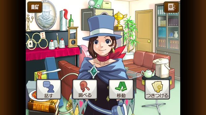 話す、調べる、つきつける、移動の4つの行動で、関係者の証言や事件に関係する証拠品などを集める。