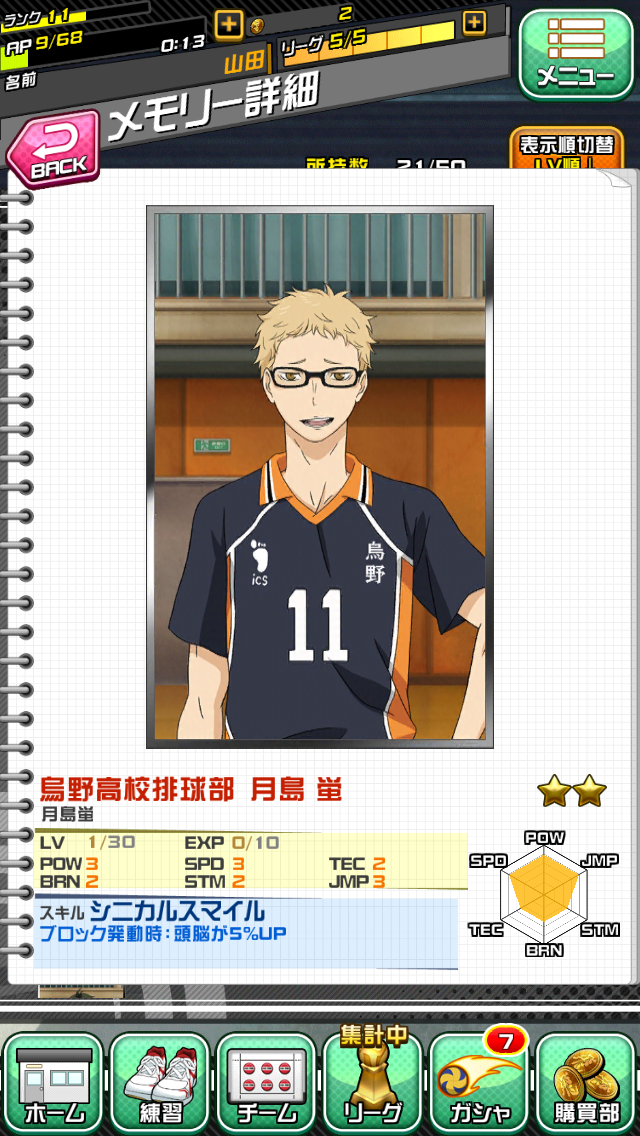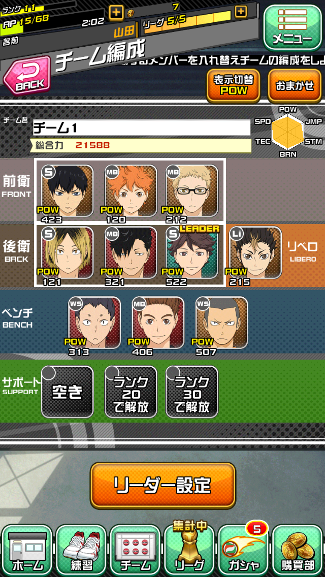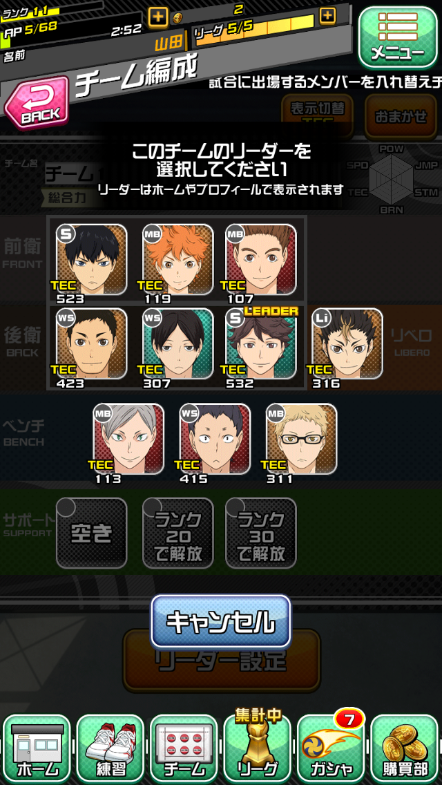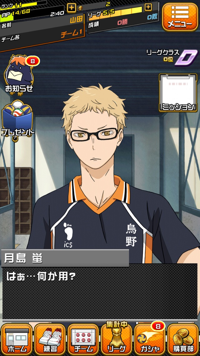 ▲月島くんをリーダーにすると、心の底から面倒くさそうな表情とため息を堪能できるのでおすすめです。
