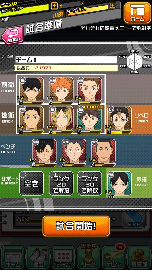 ちなみに筆者は、別の学校である及川さんと月島くんを自分のチームに入れることができ、試合開始前からすでに最高のゲームだな…と感じました。