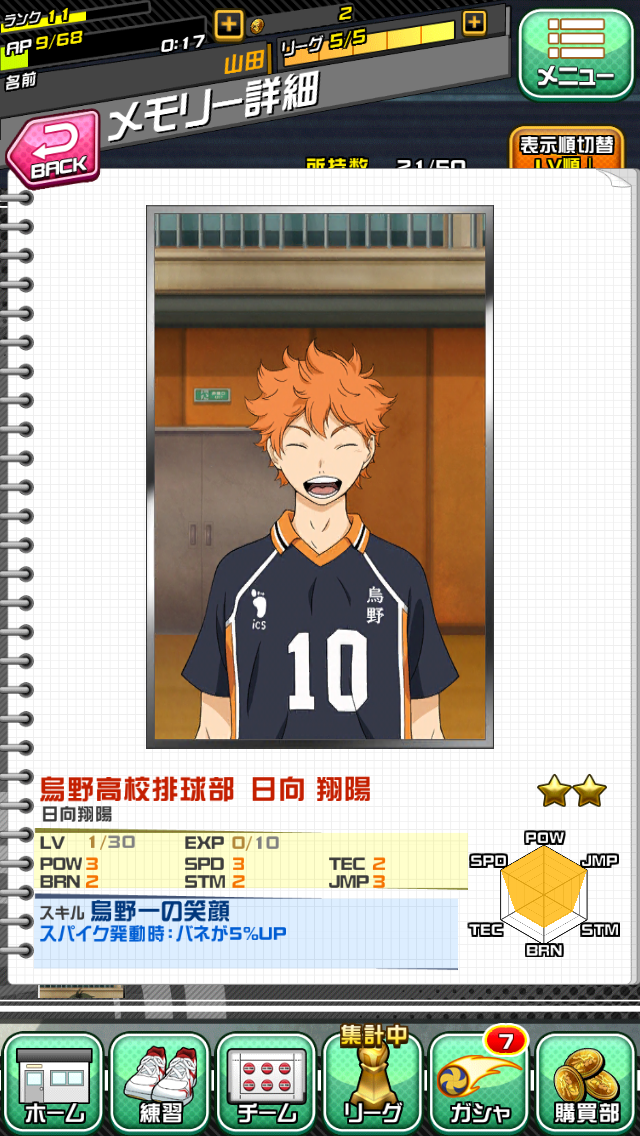 主人公「日向翔陽」が所属する「烏野高校」のメンバーはもちろん、人気の「音駒高校」や「青葉城西高校」のメンバーも登場!学校の垣根がないので好きなキャラクターだけを集めて、自分だけのオリジナルチームを作ることができますよ。