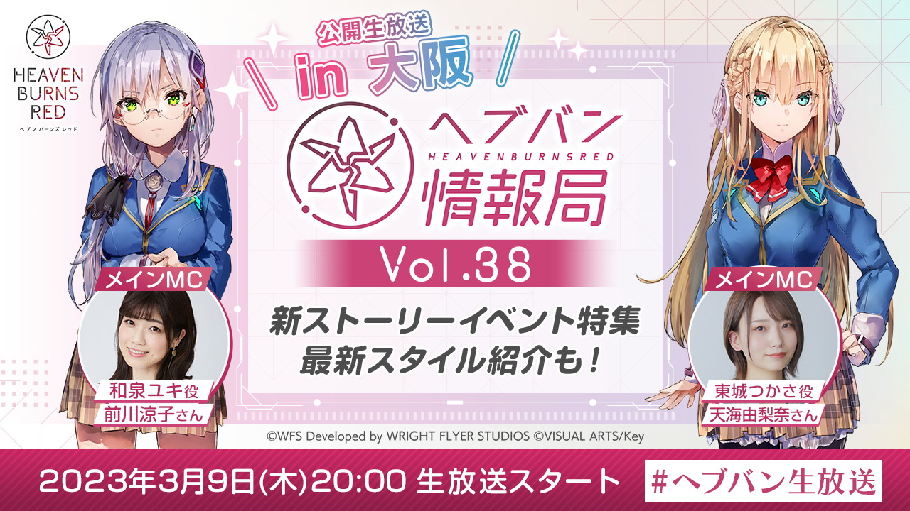 『ヘブンバーンズレッド(ヘブバン)』にて、本日2023年3月9日(木)20:00より、公式番組「ヘブバン情報局 Vol.38」が配信予定です。