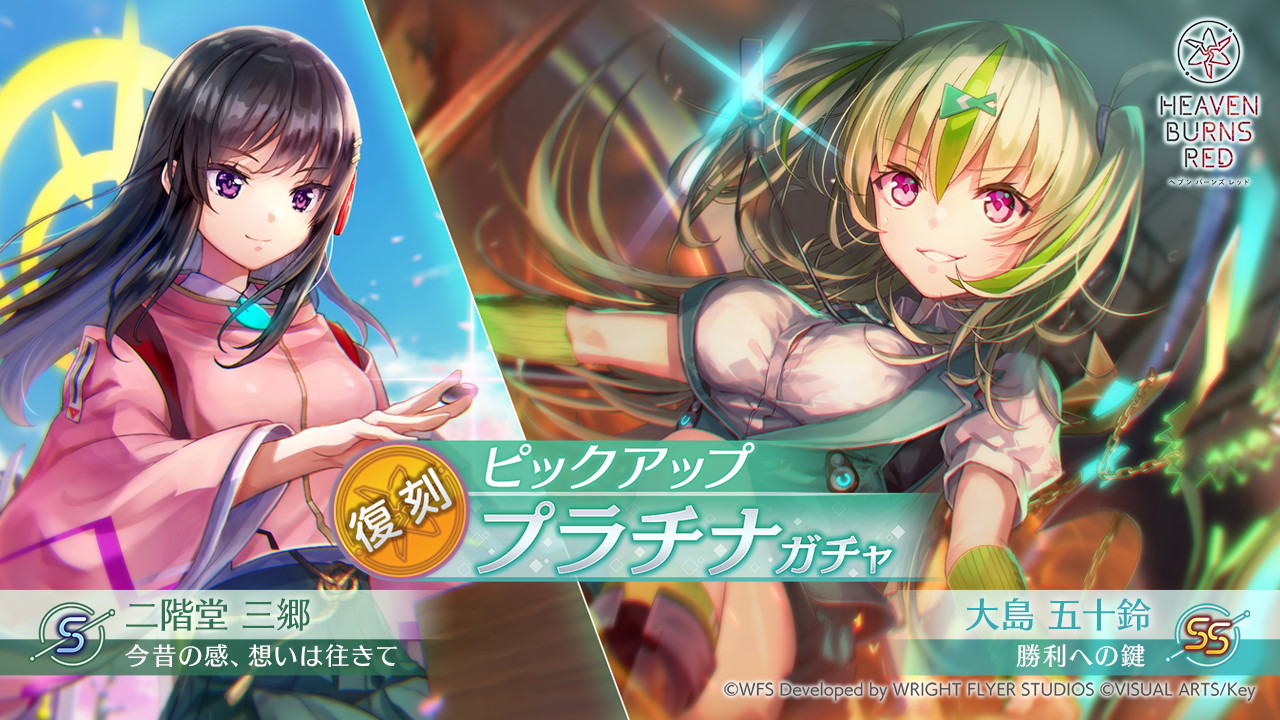 本ガチャでは、「SS[勝利への鍵]大島五十鈴」「S[今昔の感、想いは往きて]二階堂三郷」がピックアップされ、同レアリティの他スタイルよりも提供割合がアップします。