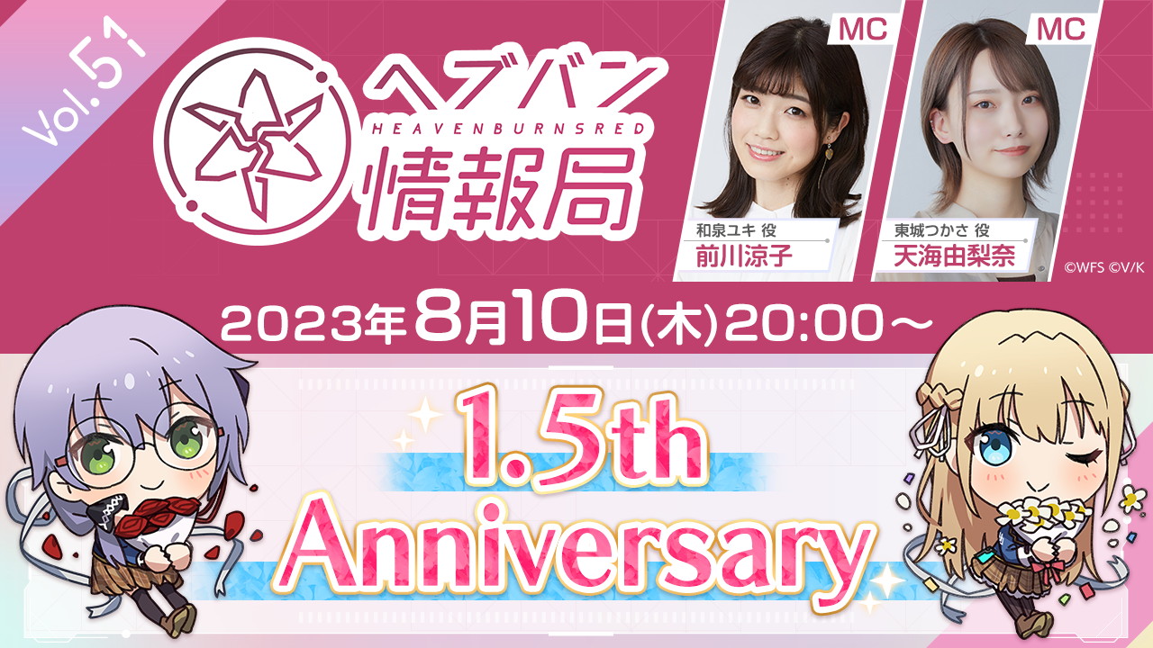 『ヘブンバーンズレッド(ヘブバン)』は、本日2023年8月10日(木)にリリースから1.5周年を迎えました。