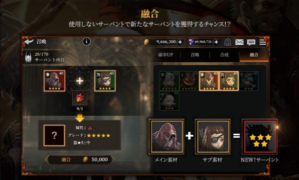 新たなサーバントを獲得する方法として、「融合システム」が実装されました。