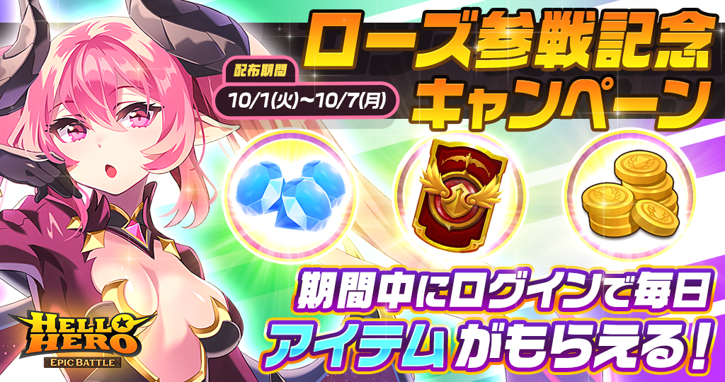 10月1日(火)0:00より、「ローズ参戦記念キャンペーン」が開催中です。