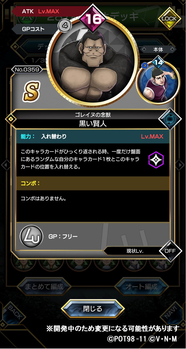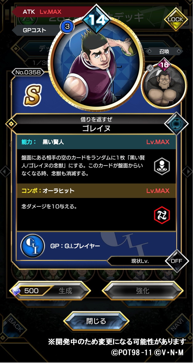 本ガチャでは、キャラクターカード「幻影旅団 SS シャルナーク:操作する運命」「G.I.プレイヤー S ゴレイヌ:借りを返すぜ」、アクションカード「G.I.プレイヤー SS:外の世界へ」の3枚が新登場し、出現率がアップしています。