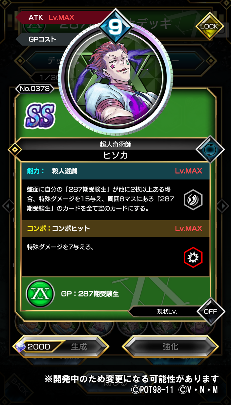 なお、「287期受験生 SS ヒソカ:超⼈奇術師」など登場したばかりの最新カードも選択可能です。