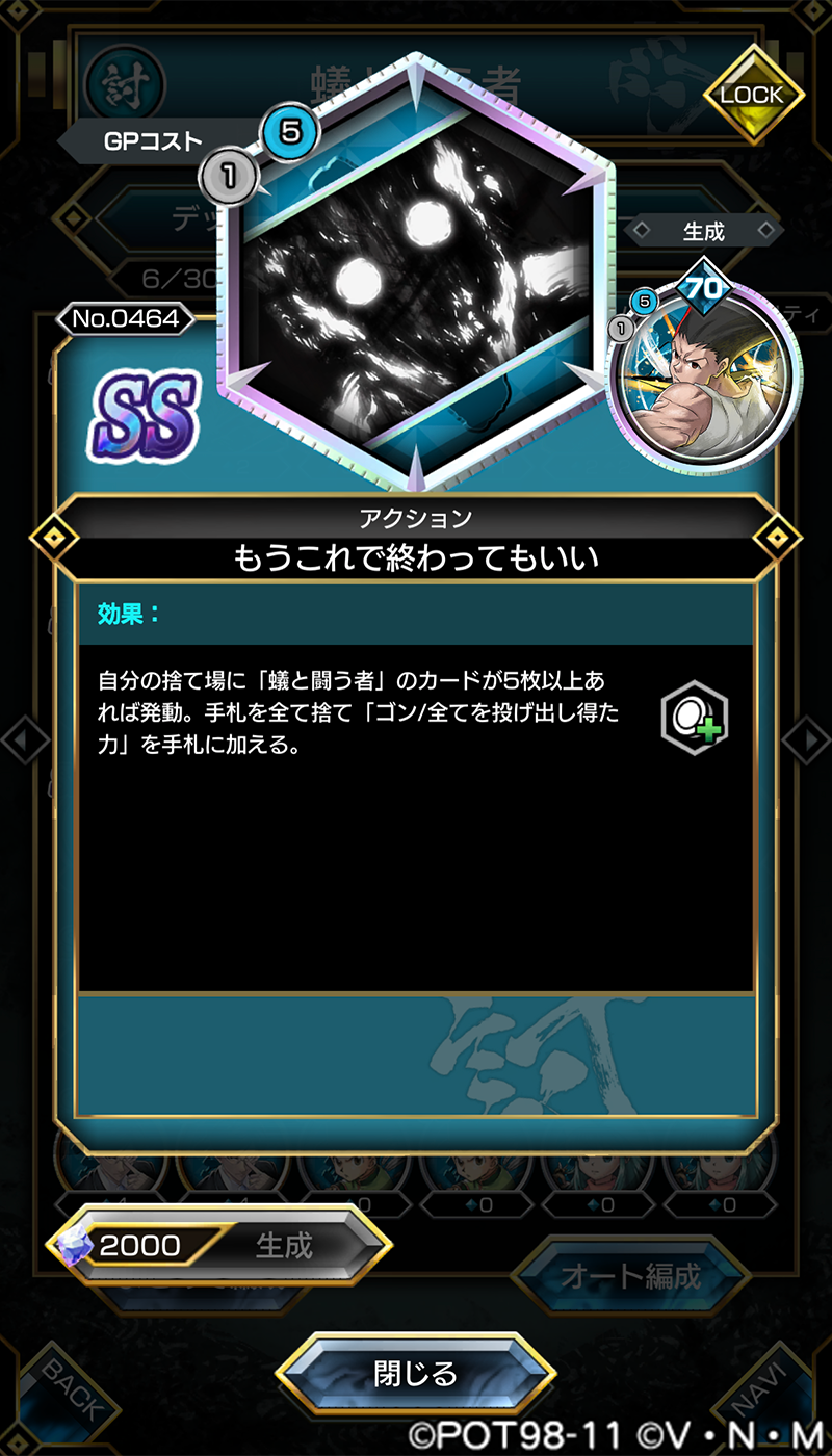 ※キャラクターカード「蟻と闘う者 SS ゴン:全てを投げ出し得た⼒」は、アクションカード「蟻と闘う者 SS:もうこれで終わってもいい」をバトル中に使用することで、自分の手札として生成されます。