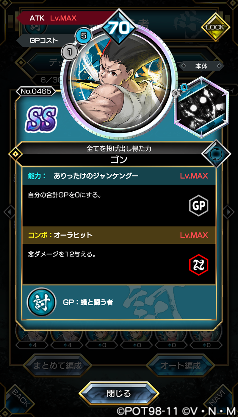 ※キャラクターカード「蟻と闘う者 SS ゴン:全てを投げ出し得た⼒」は、ガチャからは排出されません。