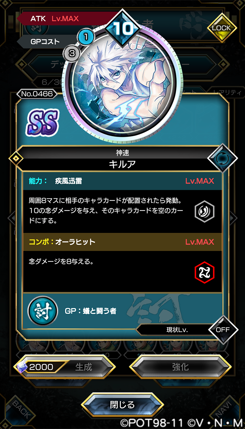 本ガチャでは、アクションカード「蟻と闘う者 SS:もうこれで終わってもいい」、キャラクターカード「蟻と闘う者 SS キルア:神速」など、新カード3枚が登場し、出現率がアップしています。