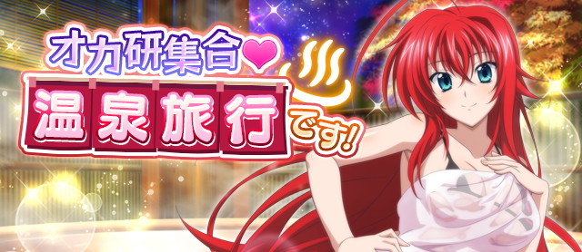 株式会社マーベラスは、大人気アニメ「ハイスクールD×D BorN」のソーシャルゲーム『ハイスクールD×D』にて、10月12日(水)より、クエストイベント「オカ研集合♪温泉旅行です!」を開催しました。