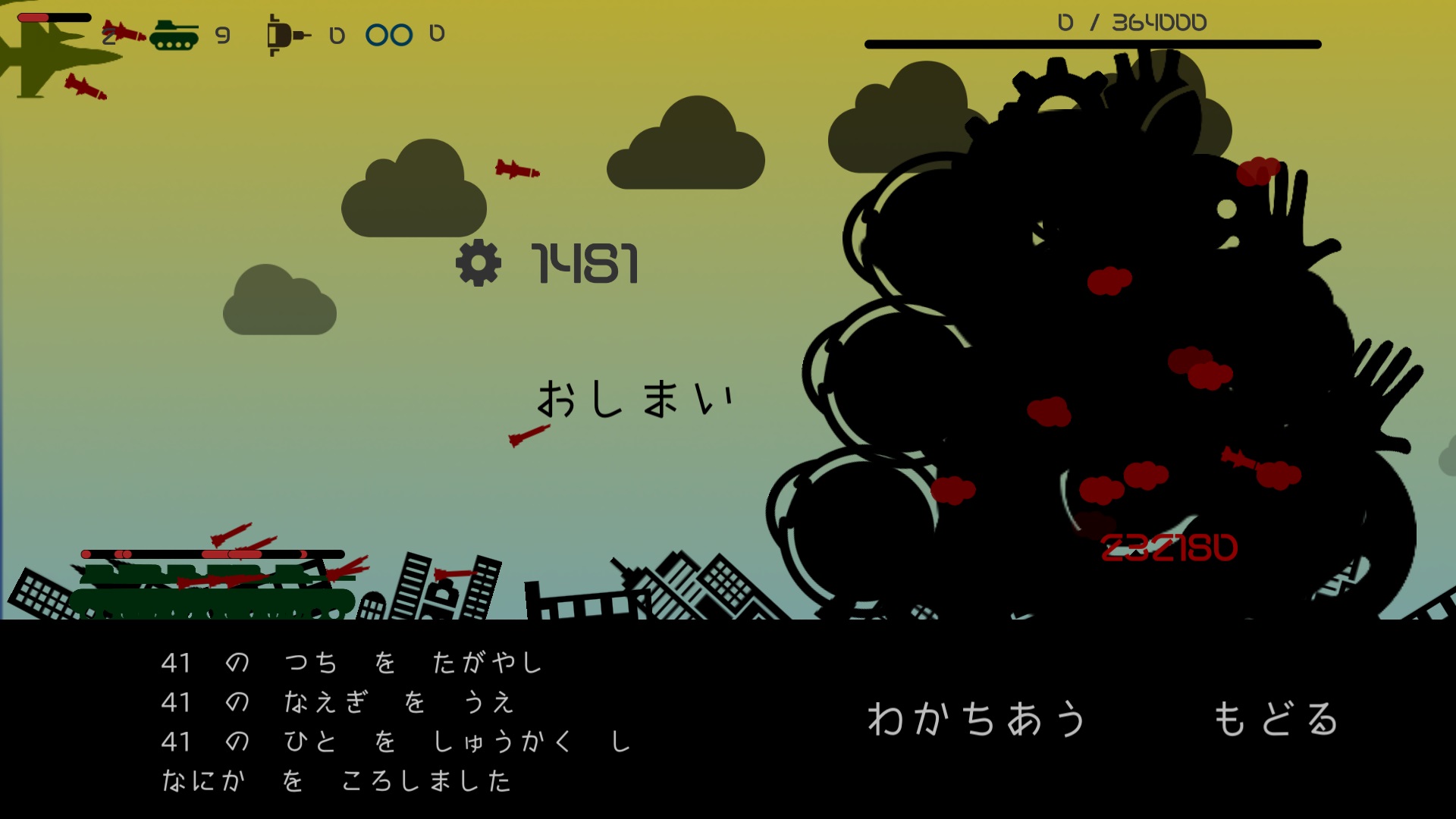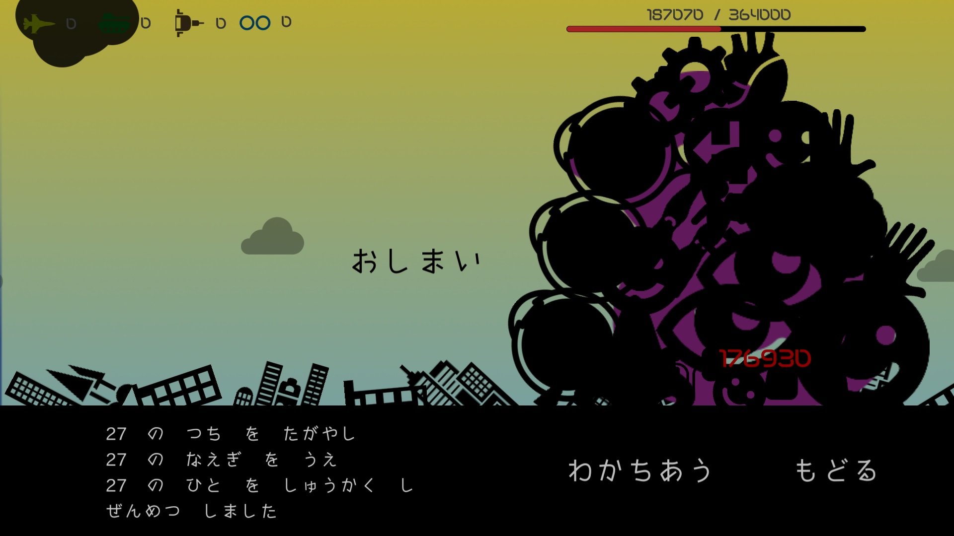 なにかを倒すまでひとを収穫して攻撃していく…、このゲームの結末は一体どこに向かうことになるのでしょうか?