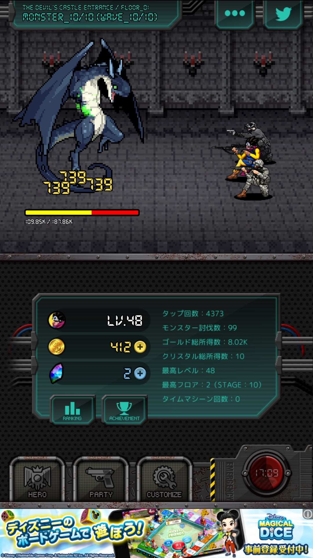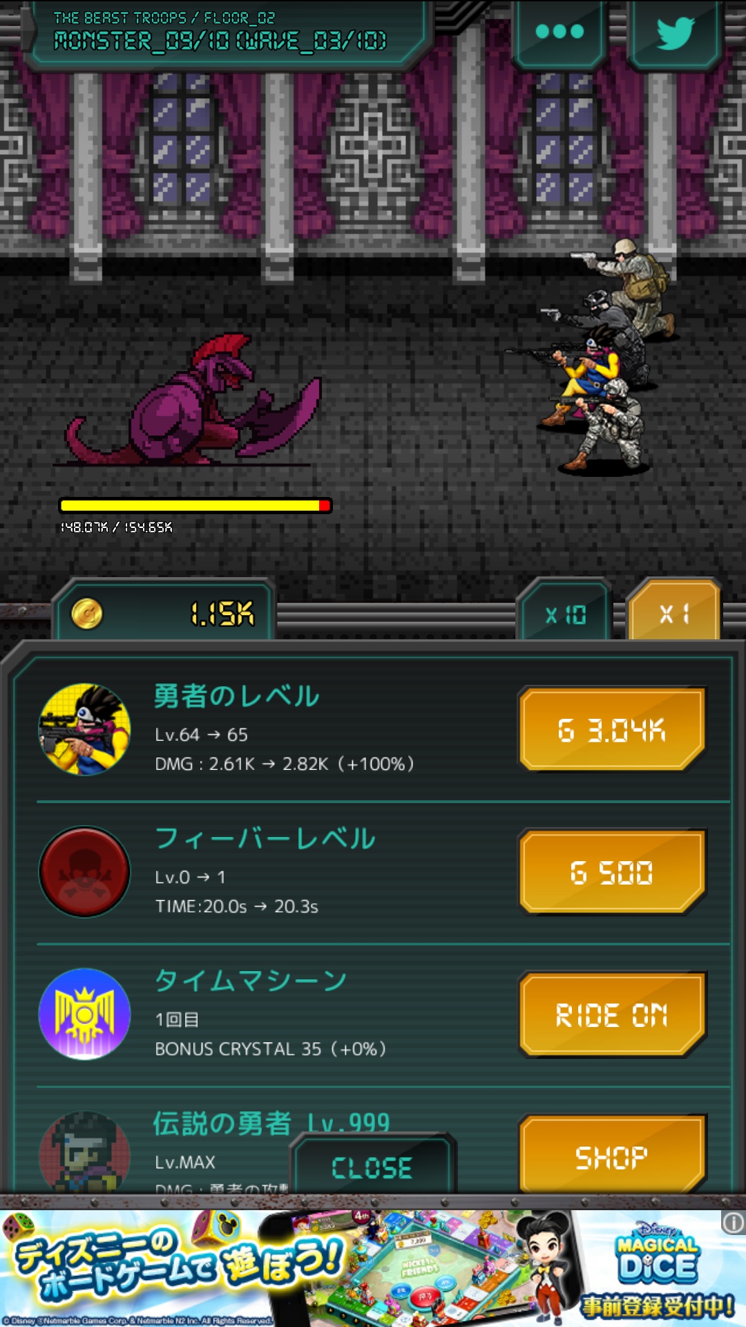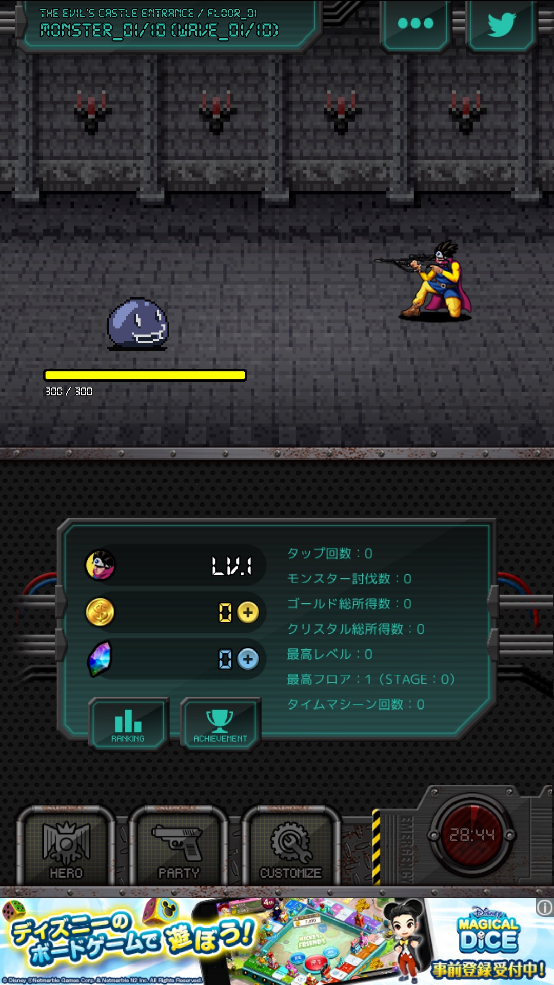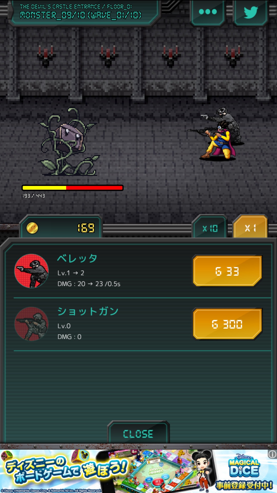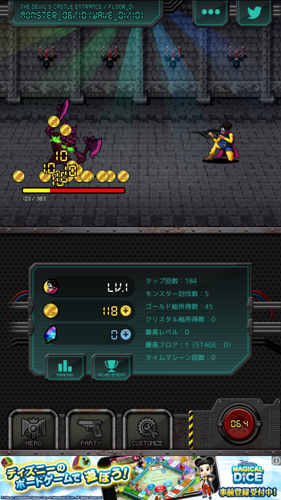 画面の上部をタップすると、敵を銃で攻撃できます。倒すとお金を落とすので、次から次へと出てくる敵を撃退していきましょう!