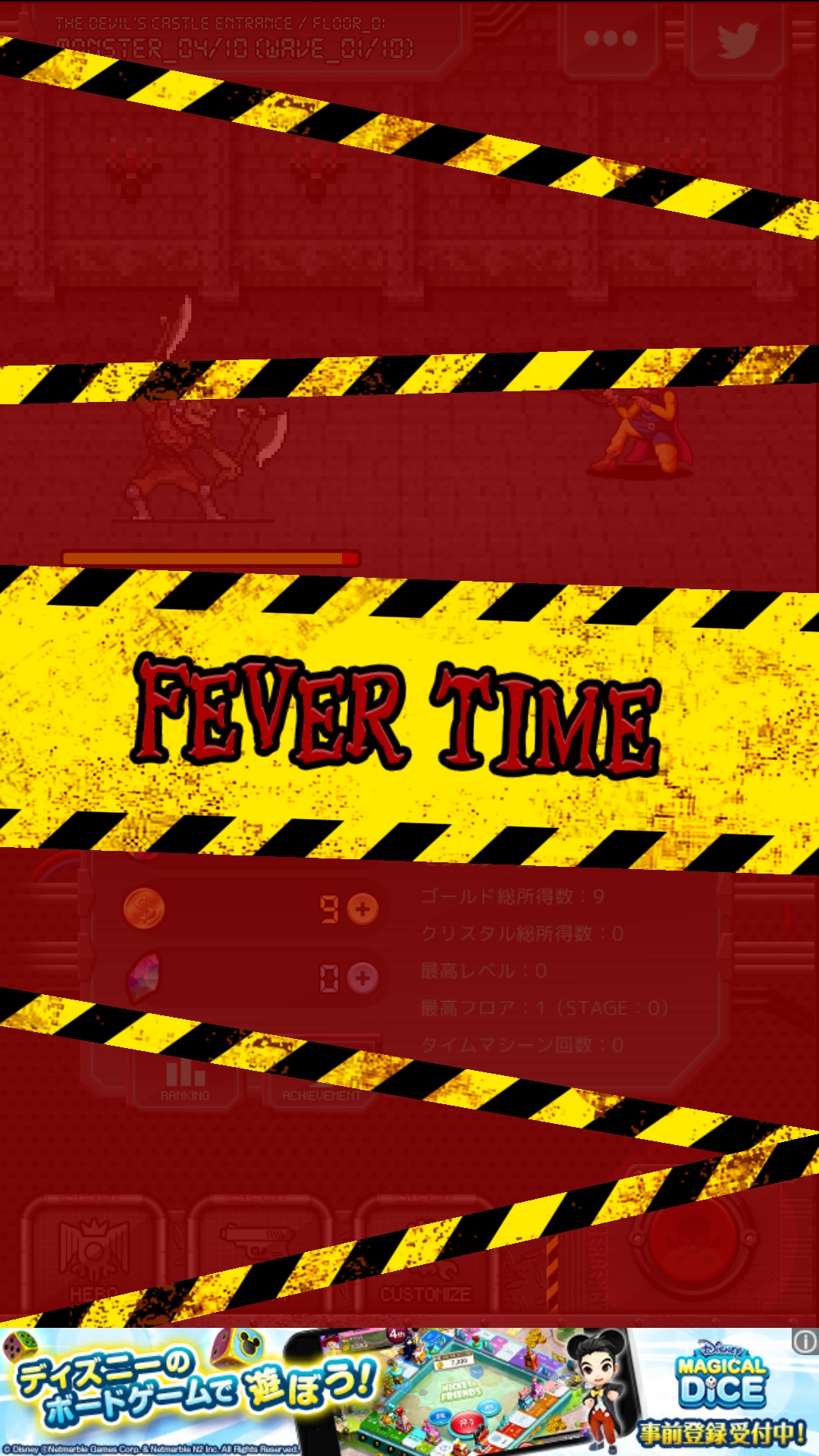 右下の赤いボタンをタップするとフィーバータイムに突入します。普段は敵を倒した時にしか手に入らないお金ですが、フィーバータイム中は攻撃した時にもお金が手に入ります。
